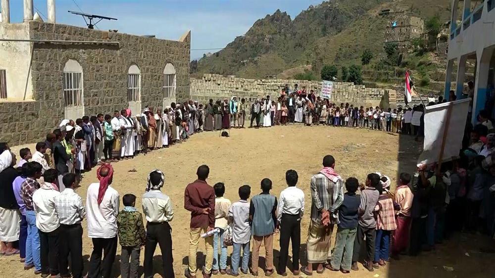 نظم أبناء المربع الغربي بمديرية الجبين بمحافظة ريمة، اليوم السبت، وقفة احتجاجية للتنديد باستمرار العدوان الأمريكي السعودي والحرب الاقتصادية على اليمن.