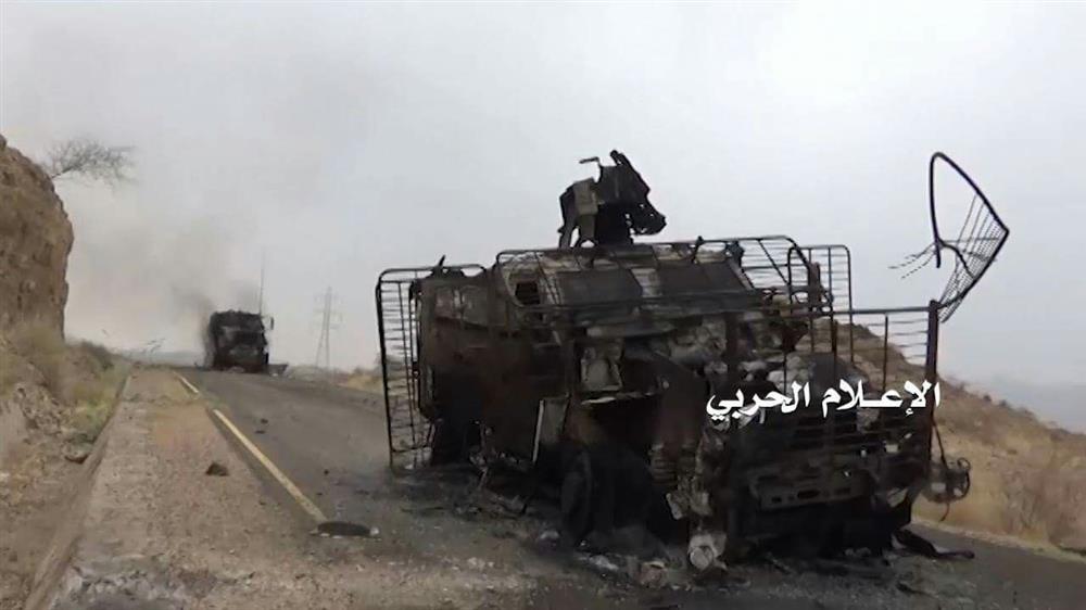 وتظهر الصور التي وزعها الاعلام الحربي الخسائر الكبرى لقوى العدوان والمرتزقة في جبهة موزع والعدد الكبير للأليات التي دمرها أبطال الجيش واللجان الشعبية.