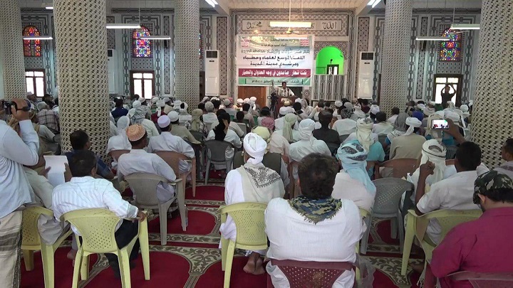 ولفت إلى ما يتعرض له العلماء في المحافظات المحتلة من قتل وإزهاق أرواحهم .. وقال " يجب على العلماء والخطباء القيام بدورهم التوعوي للمجتمع بأهمية الدفاع عن المحافظة ودحر العدوان ومرتزقته ".